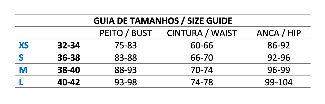 - Disponível em S, M e L